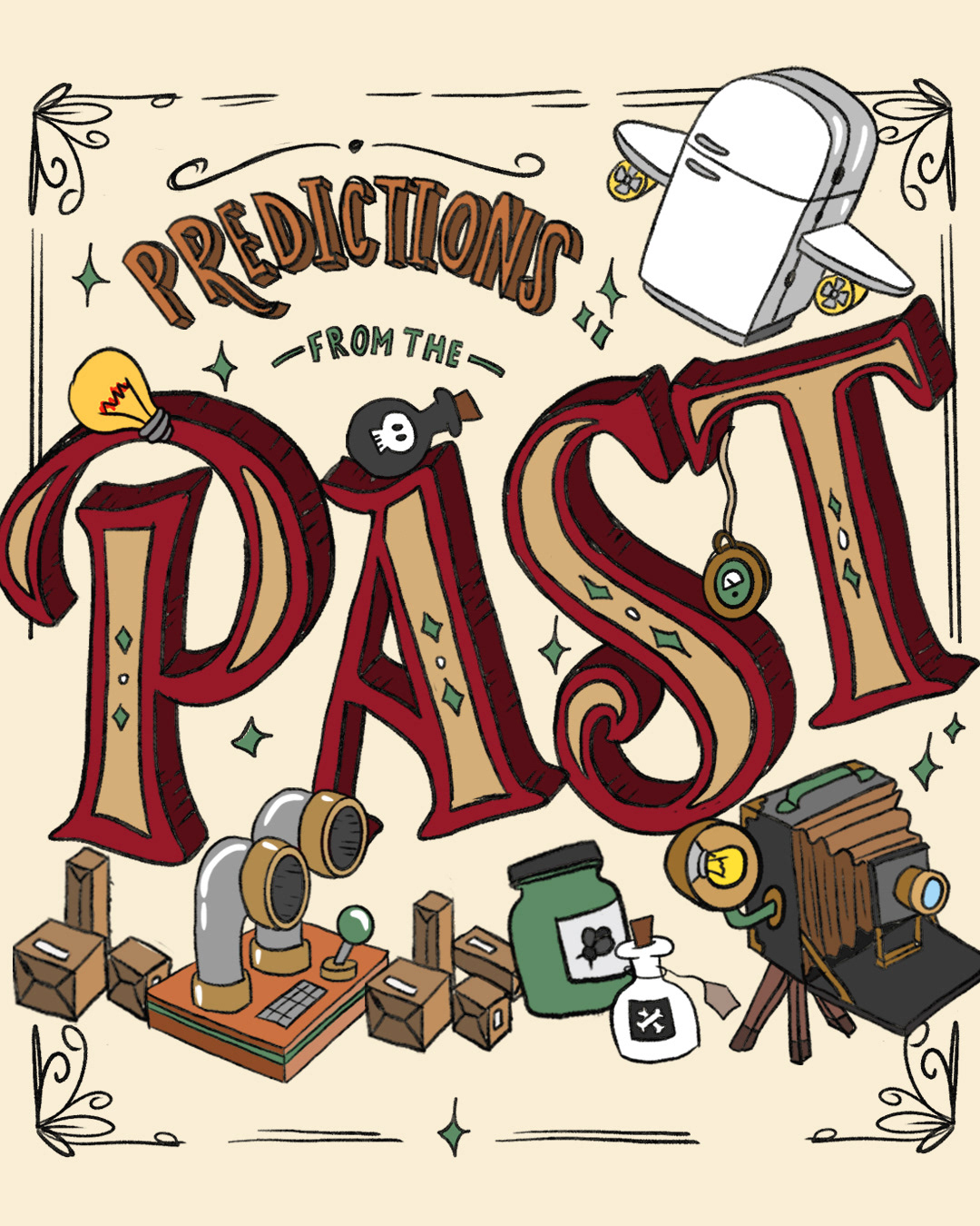 Scholastic StoryWorks reached out to illustrate the headline and multiple spot artworks, for a double spread editorial about the past and future.